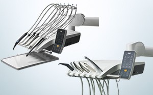 Choisissez entre l'élément d'assistance Standard (2 griffes) ou Confort (4 griffes). L'élément d'assistance standard est équipé d'une aspiration puissante et d'un éjecteur de salive. En outre, l'élément d'assistance Confort comprend la seringue SPRAYVIT, la lampe à polymériser et le panneau de commande d'assistance.