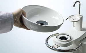Le système d'arrêt d'eau protège votre centre de traitement et la clinique du débordement de l'eau lorsque les sorties de remplissage de la tasse et de rinçage du bol sont déconnectées pour le nettoyage.